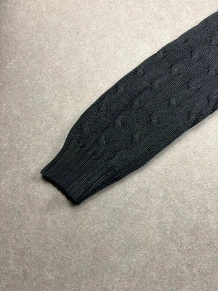 Pull torsadé en maille Ralph Lauren noir logo violet col V - photo numéro 10