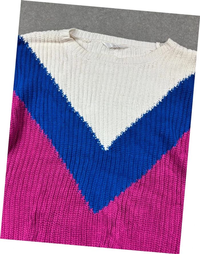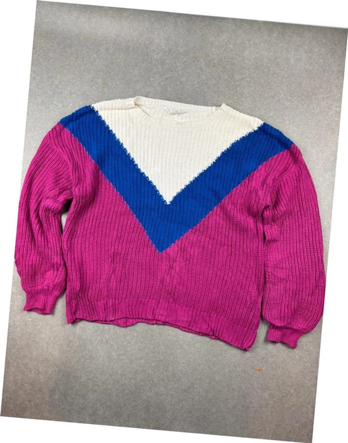 Pull vintage coogi style à motif rose bleu blanc - photo numéro 1