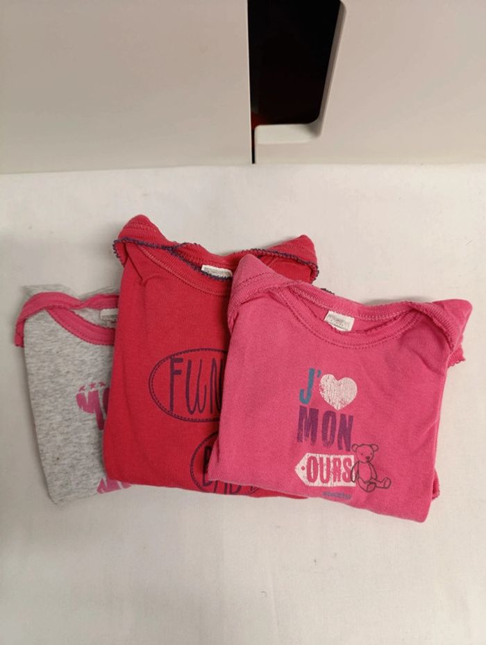 Lot de 3 bodies fille, manches longues. Taille 18 mois Très bon état D'autres articles enfant à vendre dans mon dressing (fille jusqu'à 10 ans, garçon jusqu'à 3 ans). N'hésitez pas à aller les consulter et à faire un lot 😉