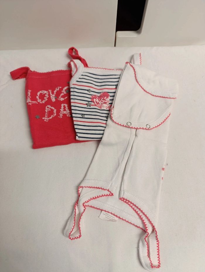Lot de 3 bodies fille, manches bretelles. Taille 18 mois Très bon état D'autres articles enfant à vendre dans mon dressing (fille jusqu'à 10 ans, garçon jusqu'à 3 ans). N'hésitez pas à aller les consulter et à faire un lot 😉