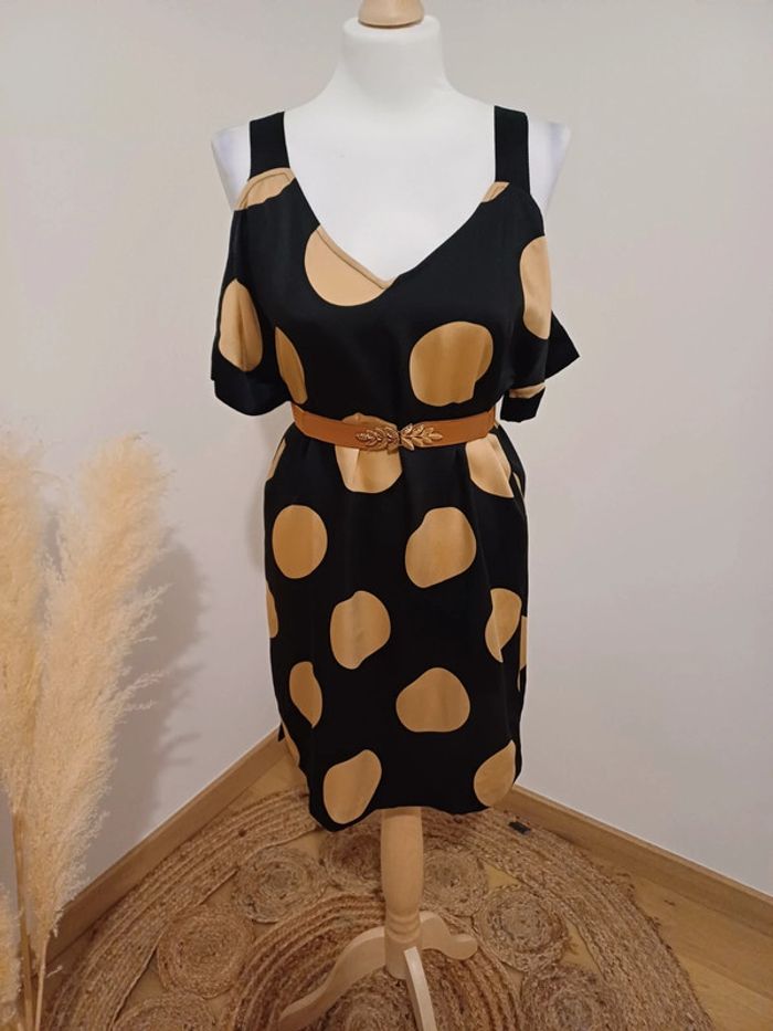 Robe noire chic légère légèrement transparente à épaules dénudées avec col en V marque Mango taille XS mais qui taille comme un S 36. La ceinture n'est pas incluse. Très bon état. Longueur: 85cm Composition: 100% Polyester #paulineragot_femmetailles #paulineragot_robetailles #mango #mng #epaulesdenudées #épaulesdécourvertes #manchescourtes #MC #petiterobenoire #ronds #fluide #léger #Colenv #simple #basic #basique #classic #classique #tendance #vintage #original #glamour #élégant #romantique #bohème #classe #chic #habillé #sortie #soirée #fete #cocktail #ceremonie #événement #misaison #automnehiver #printempsété #entretiendembauche #bureau #workinggirl #sortieentreamis #repasenfamille #dinerenamoureux #glamour #élégant #romantique #boheme #sexy #femmefatale #fetesdefindannée #Noël #saintvalentin #passion