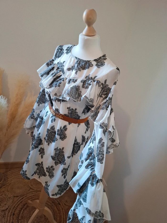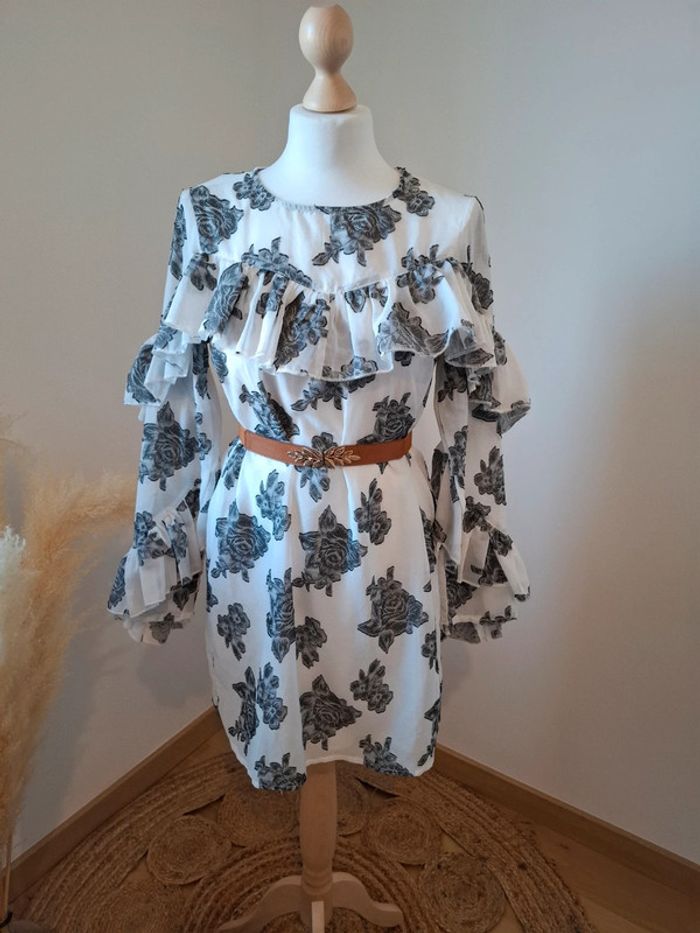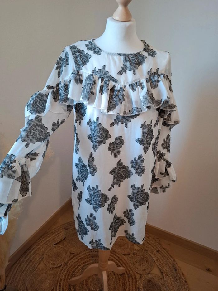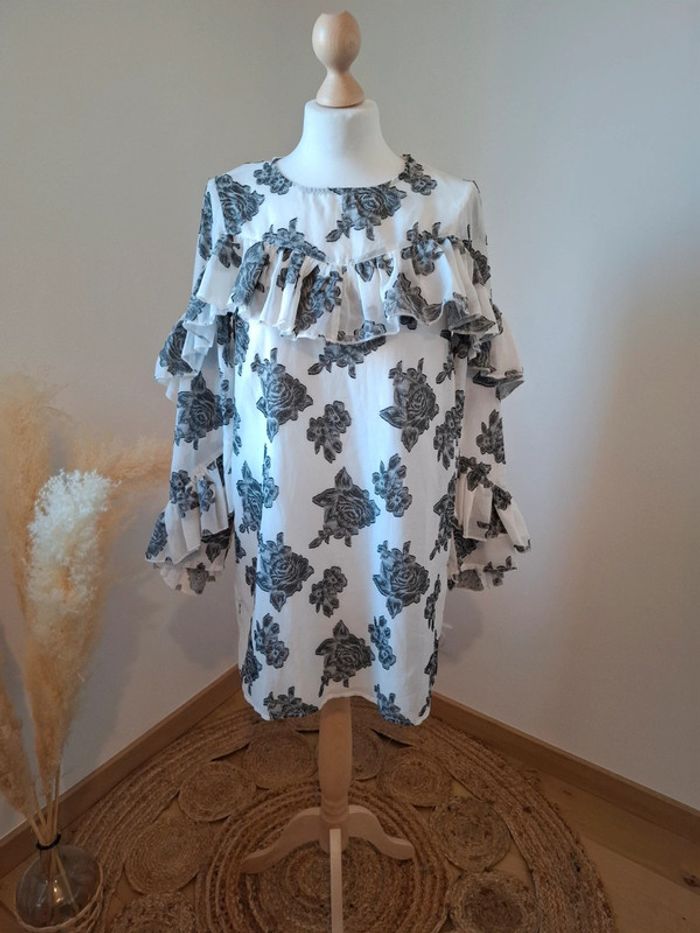 Robe ample Fleurie blanche et grise Missguided taille S 36 - photo numéro 1