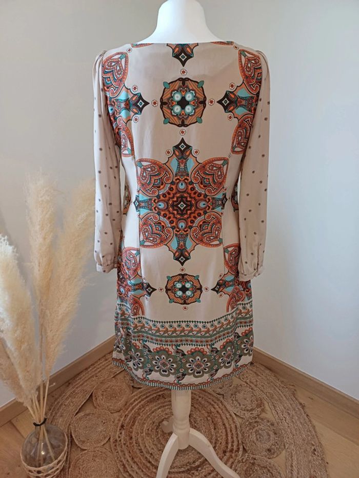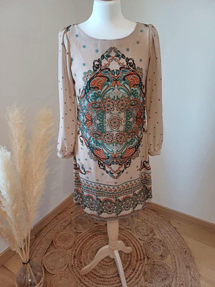 Robe fluide beige/rose à motifs avec manches longues et fermeture sur le côté marque Promod taille S 36. La ceinture n'est pas incluse. Très bon état. Longueur: 91cm #paulineragot_femmetailles #paulineragot_robetailles #promod #mancheslongues #ml #doublee #beige #rose #robeamotifs #fermeturesurlecote #zip #fluide #léger #casual #satiné #simple #basic #basique #classic #classique #tendance #vintage #original #glamour #élégant #romantique #bohème #classe #chic #habillé #sortie #soirée #fete #cocktail #ceremonie #événement #misaison #automnehiver #printempsété #entretiendembauche #bureau #workinggirl #sortieentreamis #repasenfamille #dinerenamoureux #glamour #élégant #romantique #boheme #sexy #femmefatale #fetesdefindannée #Noël #saintvalentin #passion