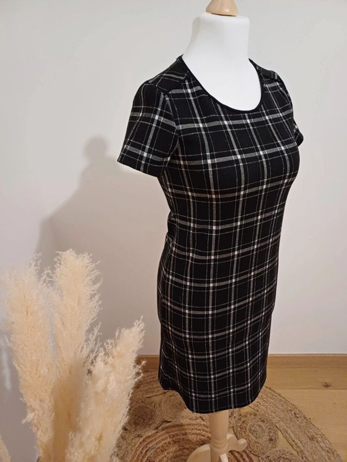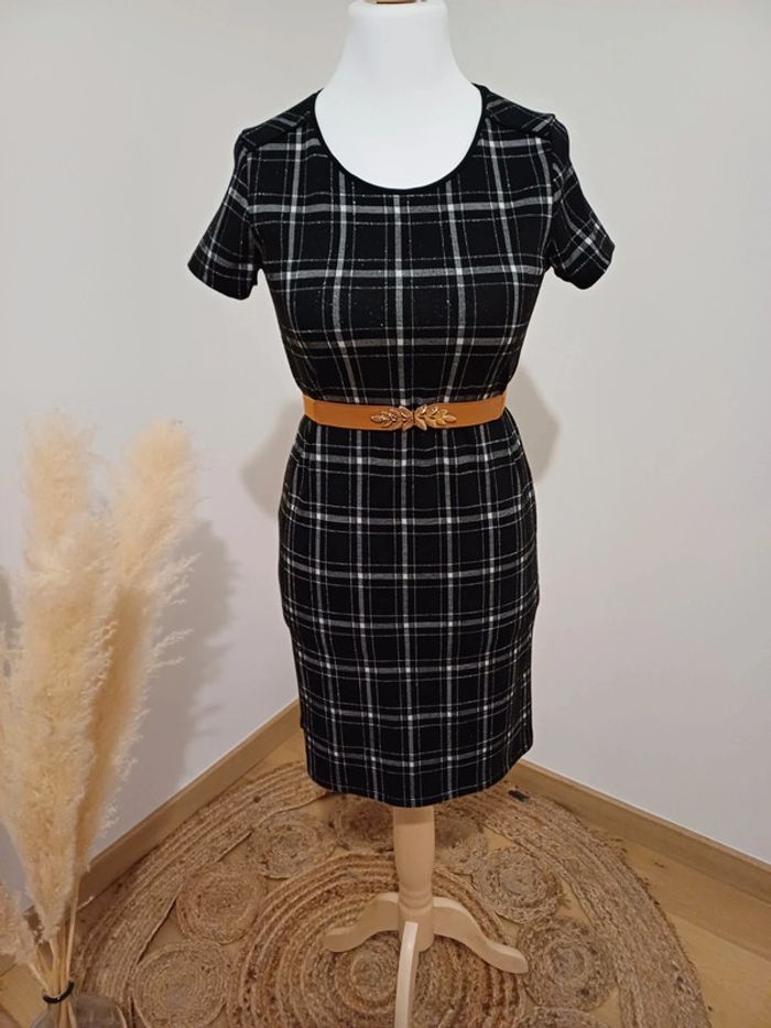 Robe noire et blanche à carreaux pailletée avec manches courtes, col rond et fermeture au dos marque Promod taille S 36. La ceinture n'est pas incluse. Très bon état. Longueur: 90cm Composition: 65% Polyester, 20%, 12% Fibre métallisée et 3% Elasthane. #paulineragot_femmetailles #paulineragot_robetailles #promod #manchescourtes #MC #colrond #fermetureaudos #zip #robeacarreaux #noireteblanc #robedroite #pailletée #simple #basic #basique #classic #classique #tendance #vintage #original #glamour #élégant #romantique #bohème #classe #chic #habillé #sortie #soirée #fete #cocktail #ceremonie #événement #misaison #automnehiver #printempsété #entretiendembauche #bureau #workinggirl #sortieentreamis #repasenfamille #dinerenamoureux #glamour #élégant #romantique #boheme #sexy #femmefatale #fetesdefindannée #Noël #saintvalentin #passion
