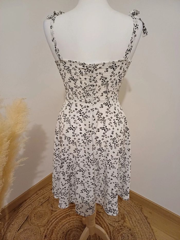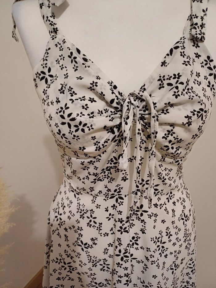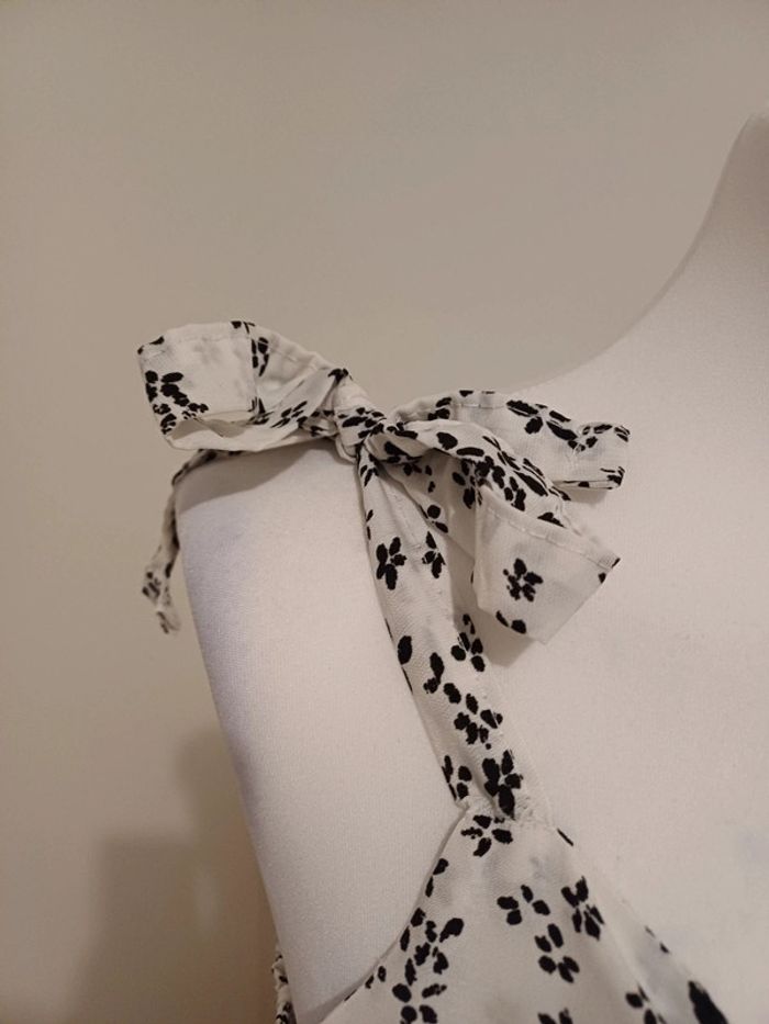Robe d'été fluide noire et blanche fleurie avec bretelles à nouer, liens à resserrer au décolleté et fermeture et smock au dos taille S 36. Très bon état. Longueur: 95cm #paulineragot_femmetailles #paulineragot_robetailles #robecourte #été #fluide #léger #noiretblanc #robeblanche #robefleurie #fleurs #imprimefloral #robeamotifs #bretellesànouer #evasee #liensanoueraudecollete #noeud #dosnu #smockeaudos #fermetureaudos #zip #colenv #colcoeur #simple #basic #basique #classic #classique #tendance #vintage #original #glamour #élégant #romantique #bohème #classe #chic #habillé #sortie #soirée #fete #cocktail #ceremonie #événement #misaison #automnehiver #printempsété #entretiendembauche #bureau #workinggirl #sortieentreamis #repasenfamille #dinerenamoureux #glamour #élégant #romantique #boheme #sexy #femmefatale #fetesdefindannée #Noël #saintvalentin #passion