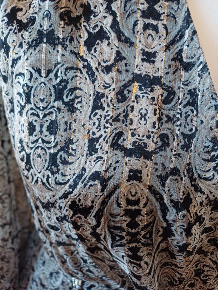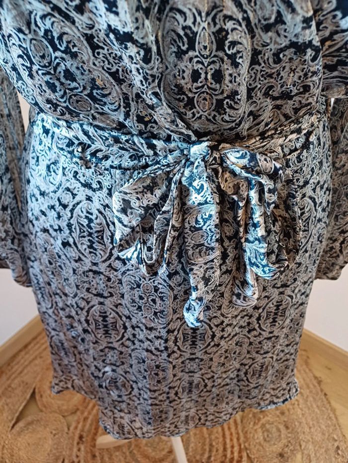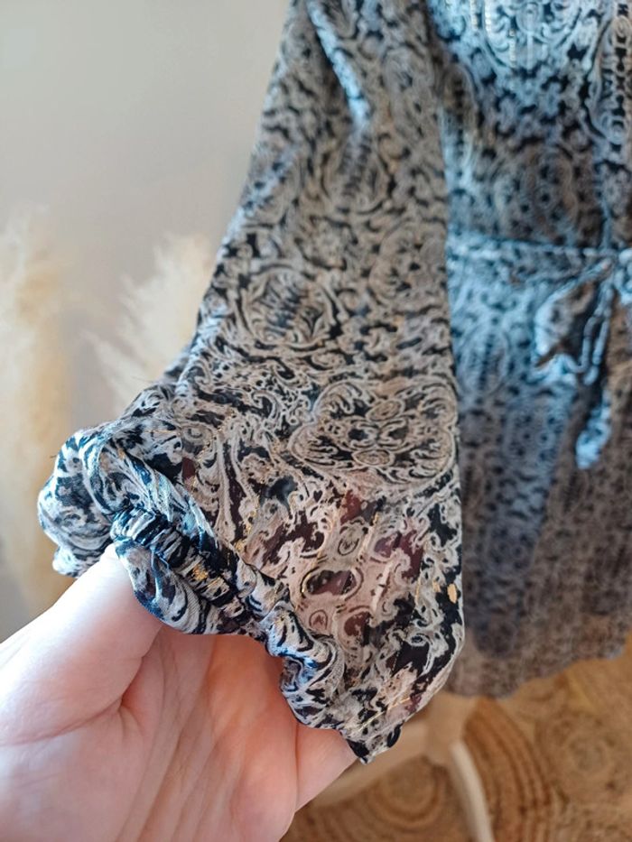 Robe cache-coeur à motifs avec manches longues transparentes, bouton pression au décolleté et ceinture amovible marque Morgan taille S 36. État satisfaisant, ⚠️ elle est déchirée au niveau de la couture sur un bras et a plusieurs fils tirés, voir photo 10. Longueur: 90cm Composition: 100% Polyester #paulineragot_femmetailles #paulineragot_robetailles #Morgan #mancheslongues #ml #manchestransparentes #resseréauxmanches #colenv #cachecoeur #noiretdoré #ceintureamovible #réglable #ajustable #boutonpression #pressiondecollete #double #simple #basic #basique #classic #classique #tendance #vintage #original #glamour #élégant #romantique #bohème #classe #chic #habillé #sortie #soirée #fete #cocktail #ceremonie #événement #misaison #automnehiver #printempsété #entretiendembauche #bureau #workinggirl #sortieentreamis #repasenfamille #dinerenamoureux #glamour #élégant #romantique #boheme #sexy #femmefatale #fetesdefindannée #Noël #saintvalentin #passion