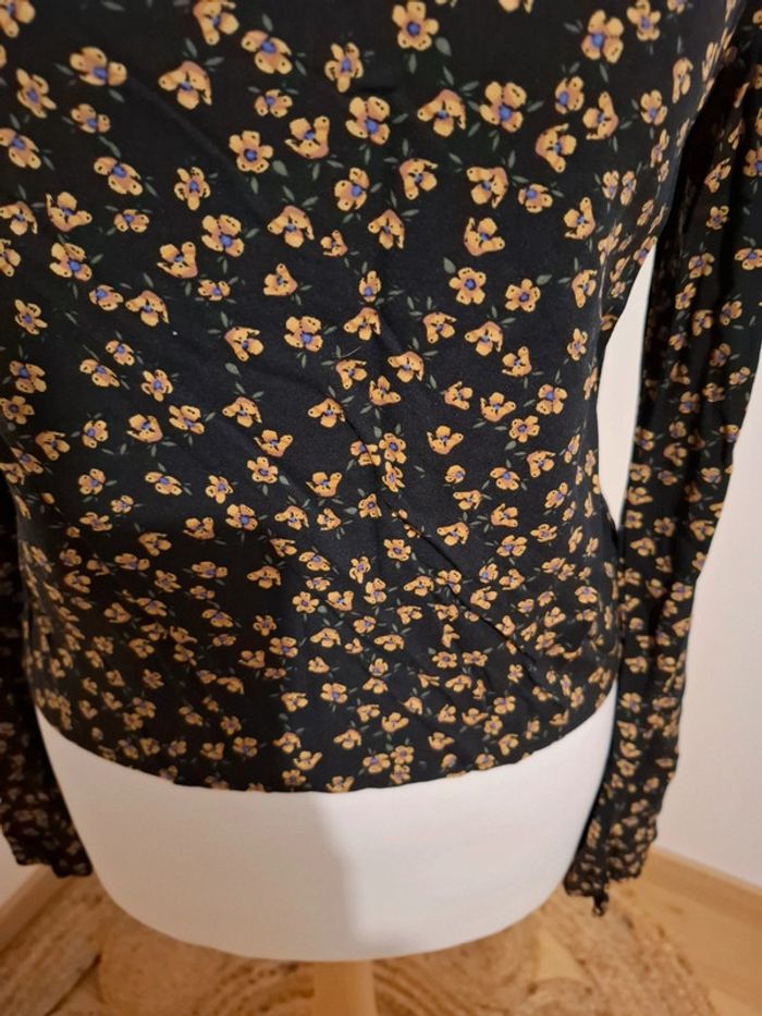 Blouse noire Fleurie Pull & Bear taille petit XS 36 - photo numéro 5