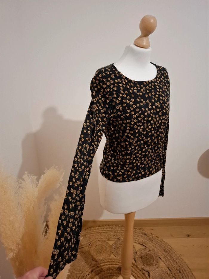 Blouse noire Fleurie Pull & Bear taille petit XS 36 - photo numéro 8