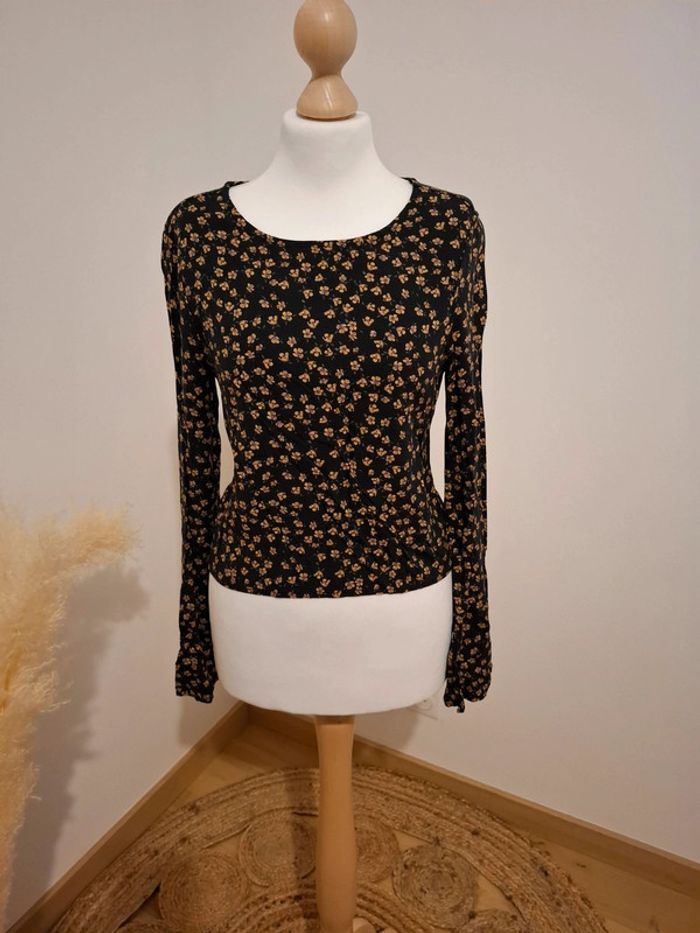 Blouse noire Fleurie Pull & Bear taille petit XS 36 - photo numéro 1