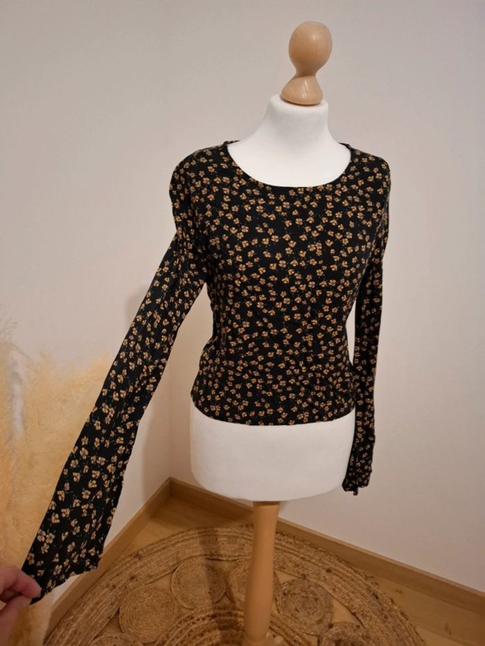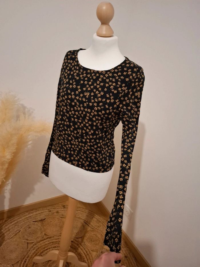 Blouse noire Fleurie Pull & Bear taille petit XS 36 - photo numéro 9