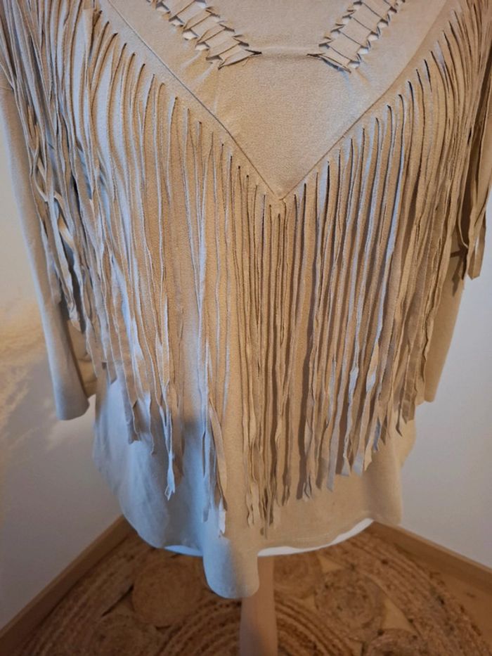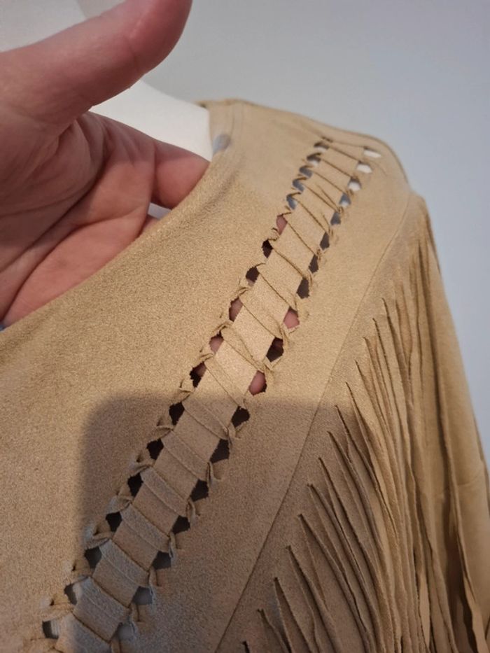 Blouse beige à franges en suédine Bershka taille M 38 - photo numéro 7
