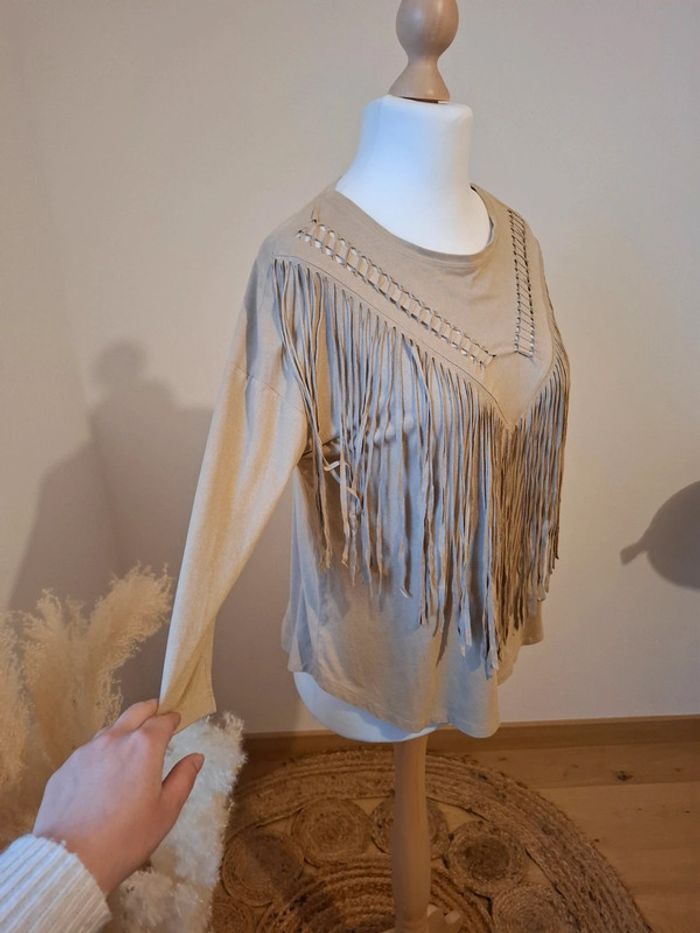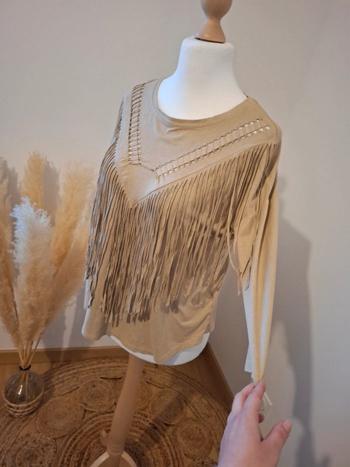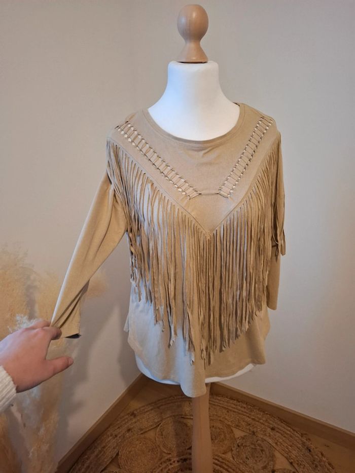 Blouse beige à franges en suédine Bershka taille M 38 - photo numéro 1