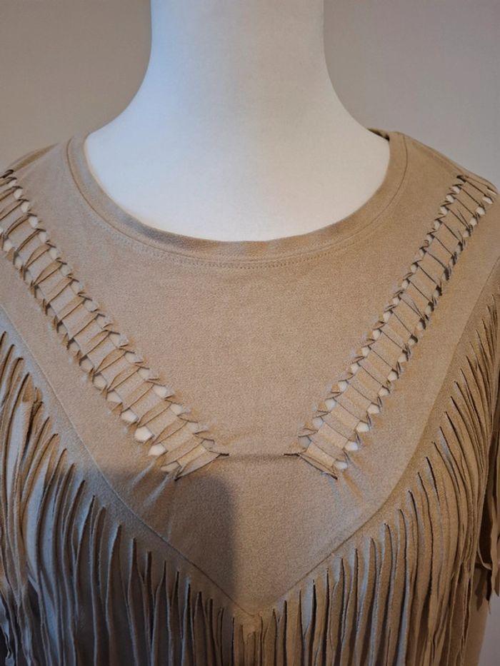 Blouse beige à franges en suédine Bershka taille M 38 - photo numéro 2