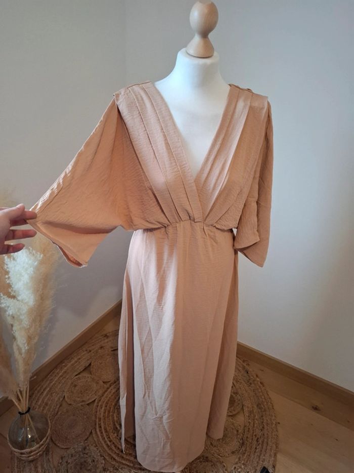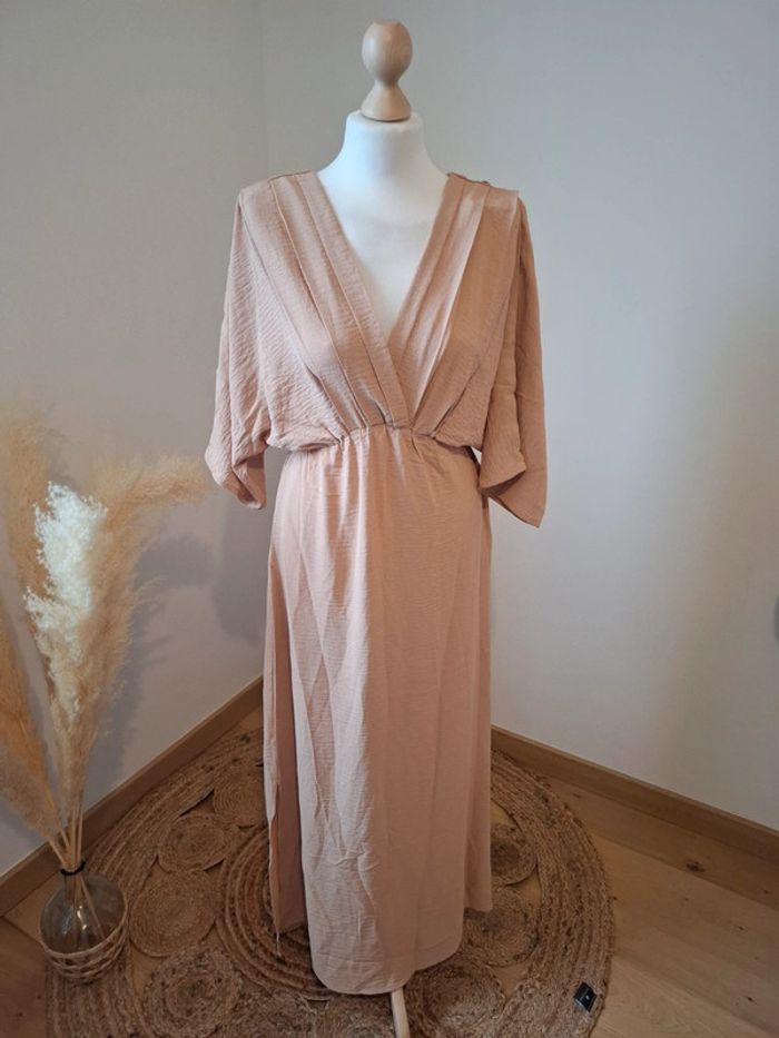 Robe beige longue fluide cache-coeur neuve Ikoone & Bianka taille S 36 - photo numéro 3