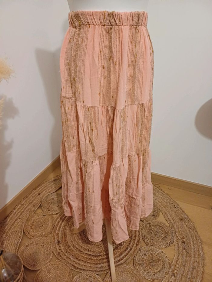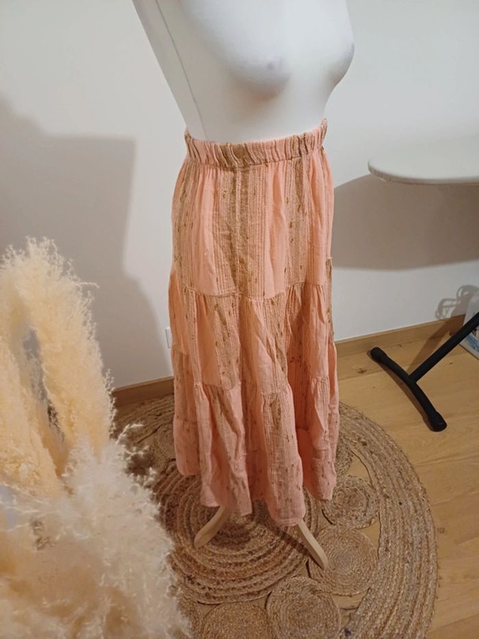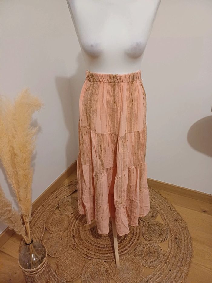 Jupe longue fluide extensible rose et dorée marque Made In Italy taille S/M 36/38. Neuf, avec étiquette 🏷. Longueur: 90cm Composition: 50% Lin et 50% Coton #paulineragot_femmetailles #paulineragot_jupetailles #paulineragot_femmetaillem #paulineragot_jupetaillem #madeinitaly #neufavecetiquette #rose #Abricot #dore #longue #fluide #taillehaute #extensible #élastique #resseréàlataille #simple #basic #basique #classic #classique #tendance #vintage #original #glamour #élégant #romantique #bohème #classe #chic #habillé #sortie #soirée #fete #cocktail #ceremonie #événement #misaison #automnehiver #printempsété #entretiendembauche #bureau #workinggirl #sortieentreamis #repasenfamille #dinerenamoureux #glamour #élégant #romantique #boheme #sexy #femmefatale #fetesdefindannée #Noël #saintvalentin #passion #rétro #jourdelan #réveillon #cadeau #ideedecadeau #cadeaudenoel #nouvelan
