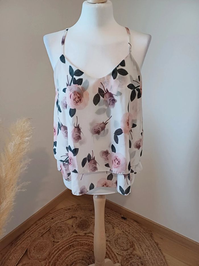 Débardeur blanc fleuri taille S 36 - photo numéro 1