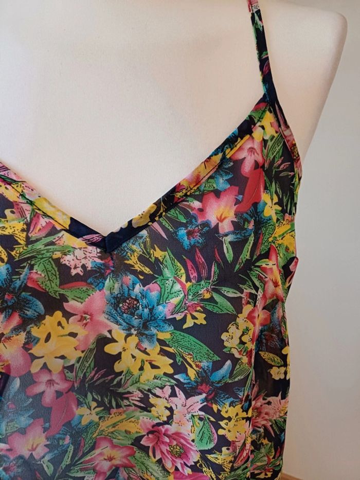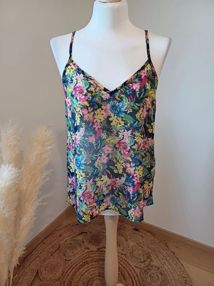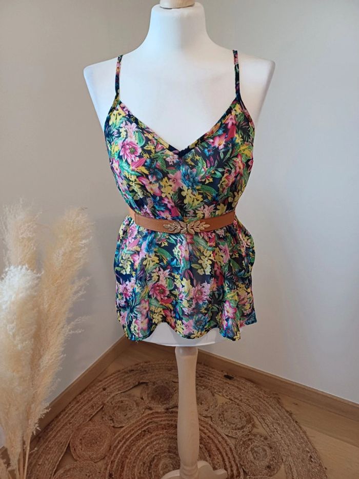 Débardeur fluide Fleuri transparent multicolore à bretelles avec col en V et dos nu marque Mim taille S 36. La ceinture n'est pas incluse. Très bon état. Longueur: 60cm Composition: 100% Polyester #paulineragot_femmetailles #paulineragot_hauttailles #mim #bretellesfines #bretellesspaghetti #multicolore #coloré #transparent #fleuri #imprimefloral #fluide #léger #simple #basic #basique #classic #classique #tendance #vintage #original #glamour #élégant #romantique #bohème #classe #chic #habillé #sortie #soirée #fete #cocktail #ceremonie #événement #misaison #automnehiver #printempsété #entretiendembauche #bureau #workinggirl #sortieentreamis #repasenfamille #dinerenamoureux #glamour #élégant #romantique #boheme #sexy #femmefatale #fetesdefindannée #Noël #saintvalentin #passion