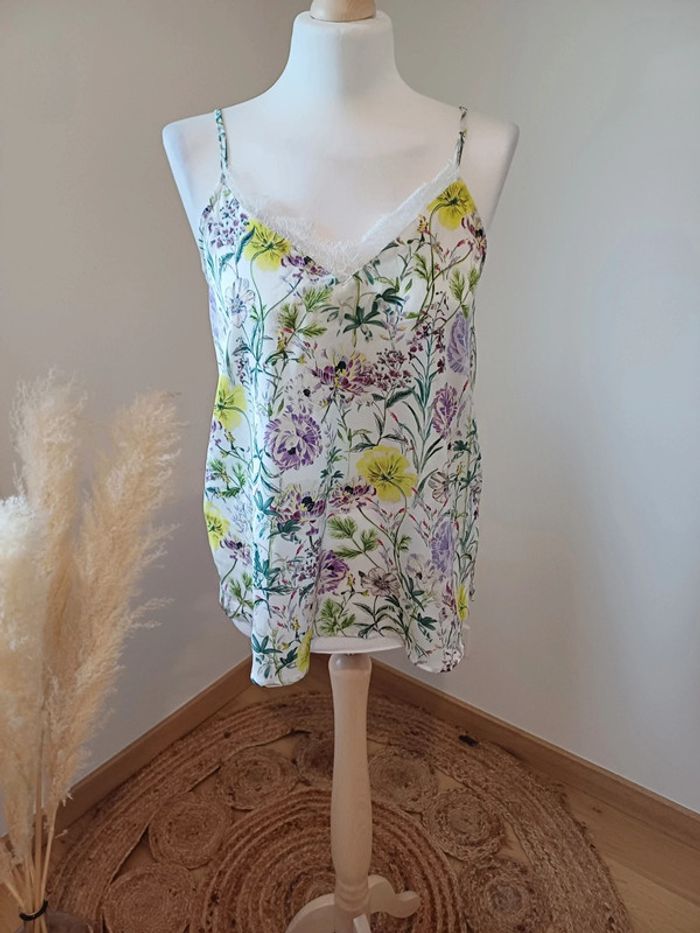 Débardeur blanc fleuri Promod taille S 36 - photo numéro 1