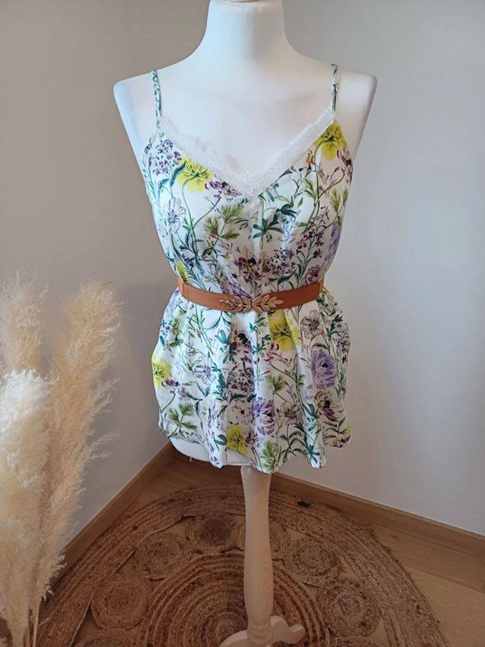 Débardeur blanc fleuri à bretelles réglables avec détail en dentelle au décolleté marque Promod taille S 36. La ceinture n'est pas incluse. Très bon état. Longueur: 65cm Composition: 100% Polyester #paulineragot_femmetailles #paulineragot_hauttailles #promod #bretellesréglables #bretellesajustables #débardeurblanc #coloré #multicolore #débardeurfleuri #fleurs #imprimefloral #debardeuramotifs #fluide #leger #dentelledecolleté #dosnu #simple #basic #basique #classic #classique #tendance #vintage #original #glamour #élégant #romantique #bohème #classe #chic #habillé #sortie #soirée #fete #cocktail #ceremonie #événement #misaison #automnehiver #printempsété #entretiendembauche #bureau #workinggirl #sortieentreamis #repasenfamille #dinerenamoureux #glamour #élégant #romantique #boheme #sexy #femmefatale #fetesdefindannée #Noël #saintvalentin #passion