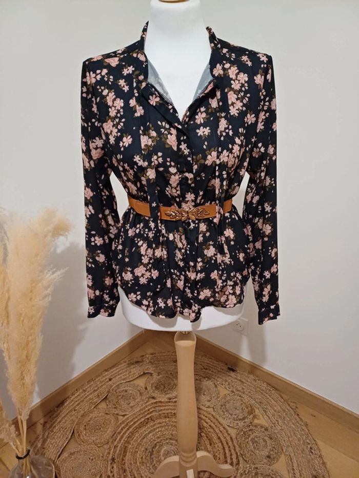 Chemise noire Fleurie fluide New Collection taille S 36 - photo numéro 1