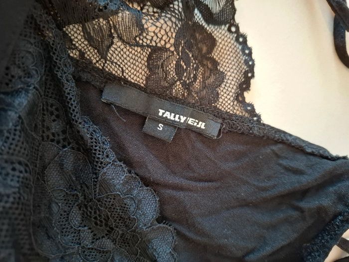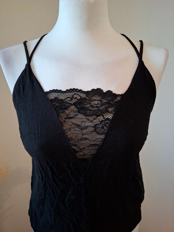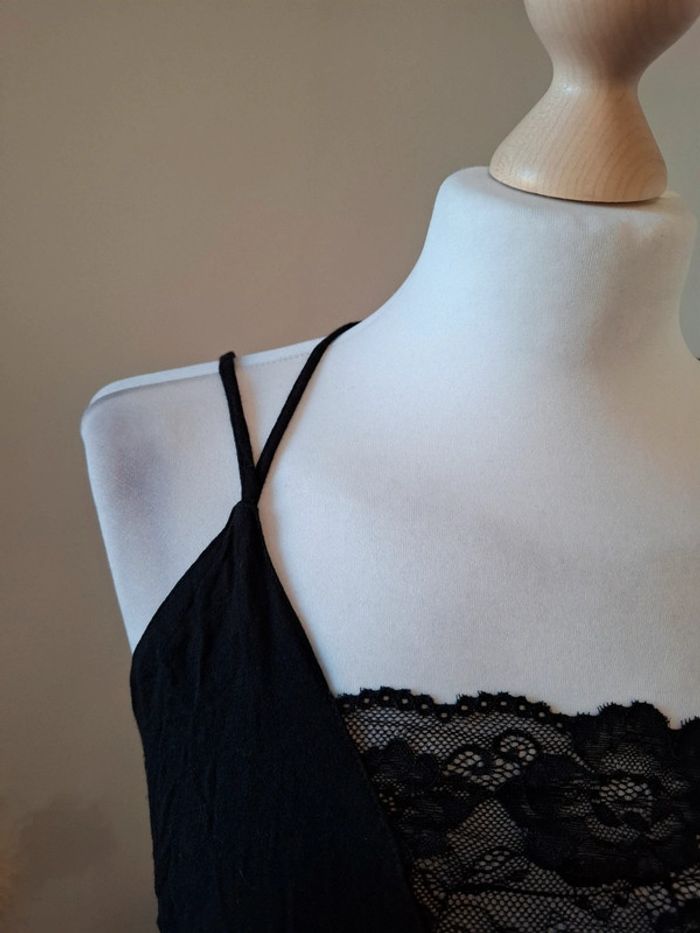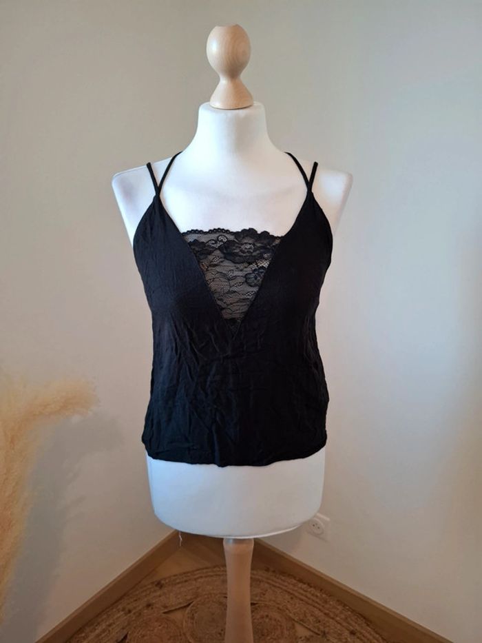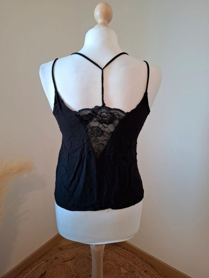 Débardeur noir sexy à bretelles avec détails en dentelle devant et dans le dos marque Tally Weijl taille petit S 36. Bon état, ⚠️ la partie tressée au dos est fragile car il est un peu décousu, voir photo 6.