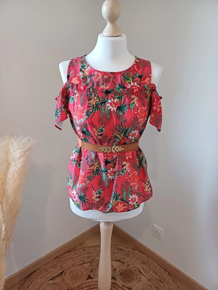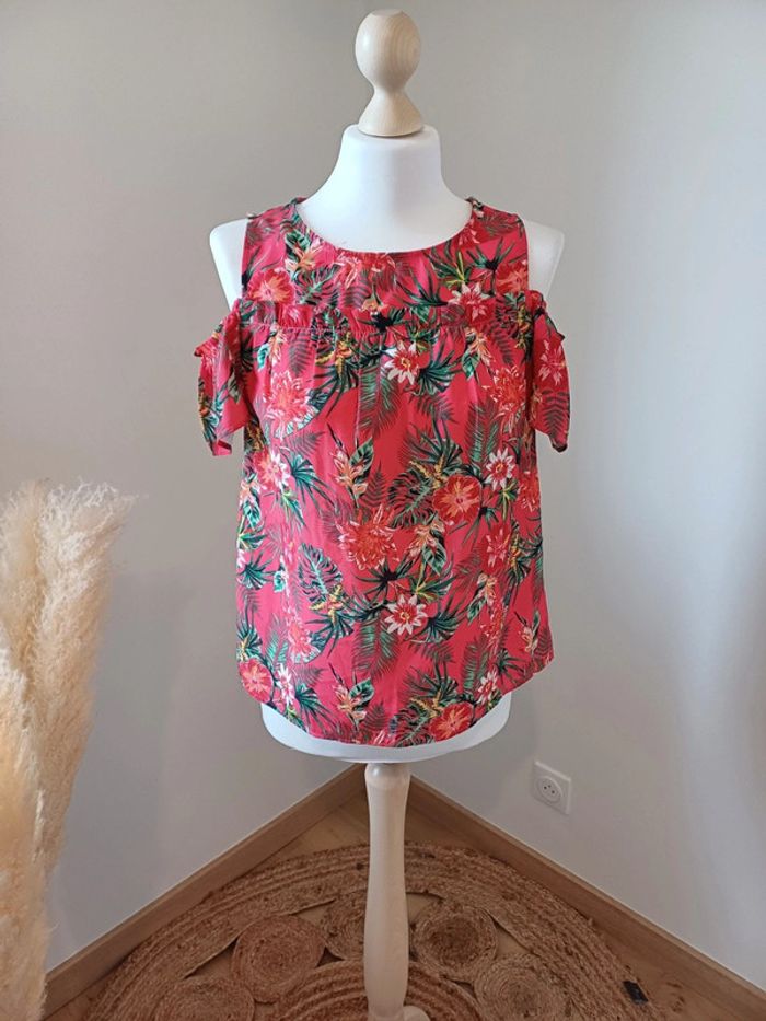 Haut rose Fleuri à épaules dénudées Kiabi taille S 36 - photo numéro 1