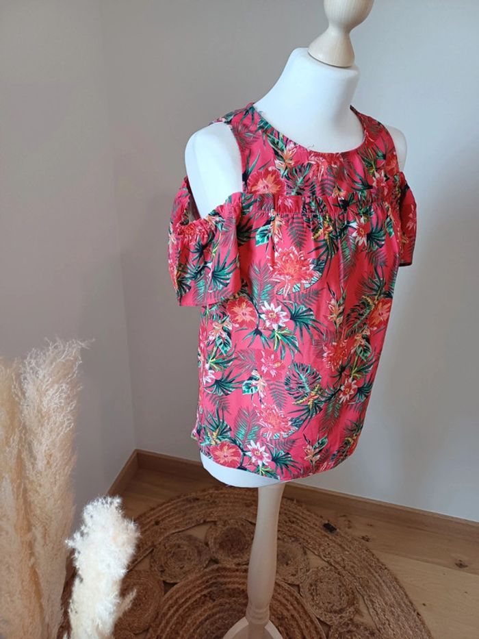 Haut rose Fleuri à épaules dénudées Kiabi taille S 36