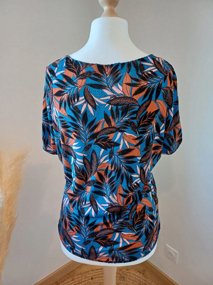 Blouse bleue à imprimé feuilles Promod taille S 36 - photo numéro 1