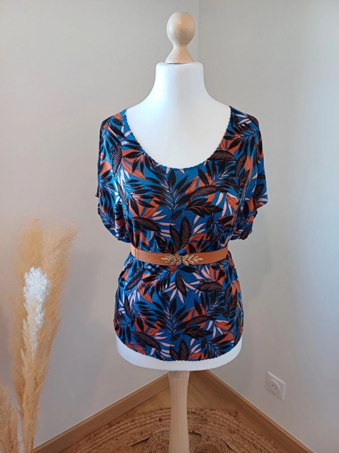 Blouse bleue fluide à manches courtes avec imprimé feuilles et col rond marque Promod taille S 36. La ceinture n'est pas incluse. Très bon état. Longueur: 65cm #paulineragot_femmetailles #paulineragot_hauttailles #promod #manchescourtes #mc #colrond #impriméfeuilles #coloré #fluide #simple #basic #basique #classic #classique #tendance #vintage #original #glamour #élégant #romantique #bohème #classe #chic #habillé #sortie #soirée #fete #cocktail #ceremonie #événement #misaison #automnehiver #printempsété #entretiendembauche #bureau #workinggirl #sortieentreamis #repasenfamille #dinerenamoureux #glamour #élégant #romantique #boheme #sexy #femmefatale #fetesdefindannée #Noël #saintvalentin #passion