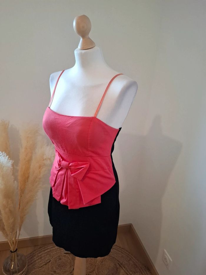 Mini robe bicolore rose et noire à bretelles réglables avec noeud, coques à la poitrine, dos nu et fermeture à l'arrière marque Made In Italy taille M mais qui taille comme un XS/S 34/36. Bon état. Longueur: 80cm Composition: 95% Coton et 5% Elasthane #paulineragot_femmetaillexs #paulineragot_robetaillexs #paulineragot_femmetailles #paulineragot_robetailles #madeinitaly #rose #noir #fuschia #bretellesréglables #ajustables #dosnu #fermeture #zip #bustier #noeud #moulant #presducorps #courte #mini #basic #basique #classic #classique #tendance #vintage #original #glamour #élégant #romantique #bohème #classe #chic #habillé #sortie #soirée #fete #cocktail #ceremonie #événement #misaison #automnehiver #printempsété #entretiendembauche #bureau #workinggirl #sortieentreamis #repasenfamille #dinerenamoureux #glamour #élégant #romantique #boheme #sexy #femmefatale #fetesdefindannée #Noël #saintvalentin #passion #rétro #jourdelan #réveillon #cadeau #ideedecadeau #cadeaudenoel #nouvelan