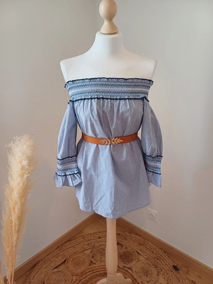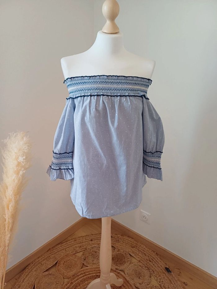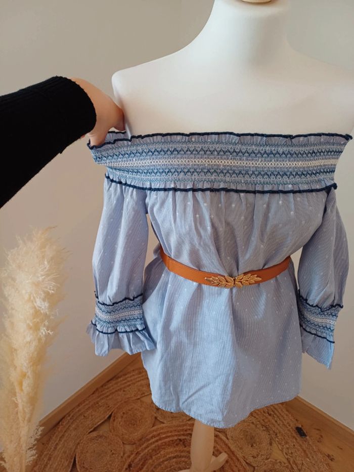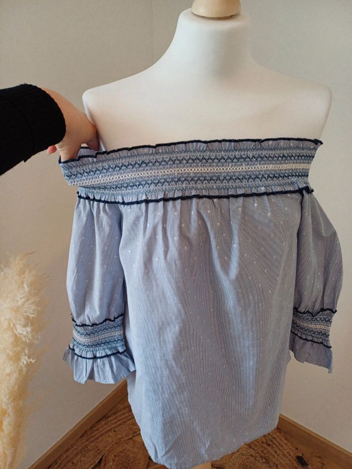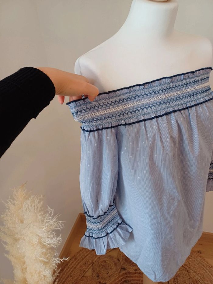 Haut rayé bleu et blanc à épaules découvertes marque Primark taille XS mais qui taille comme un S 36. La ceinture n'est pas incluse. Très bon état. Longueur: 52cm Composition: 50% Coton et 50% Polyester. #paulineragot_femmetailles #paulineragot_hauttailles #primark #epaulesdenudées #epaulesdecouvertes #topbleu #bleuetblanc #topraye #smockauxmanches #smock #plumetis #simple #basic #basique #classic #classique #tendance #vintage #original #glamour #élégant #romantique #bohème #classe #chic #habillé #sortie #soirée #fete #cocktail #ceremonie #événement #misaison #automnehiver #printempsété #entretiendembauche #bureau #workinggirl #sortieentreamis #repasenfamille #dinerenamoureux #glamour #élégant #romantique #boheme #sexy #femmefatale #fetesdefindannée #Noël #saintvalentin #passion