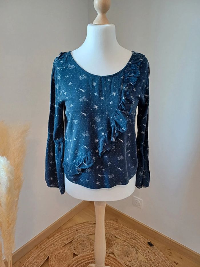Blouse bleue marine à motifs Bonobo taille S 36 - photo numéro 1