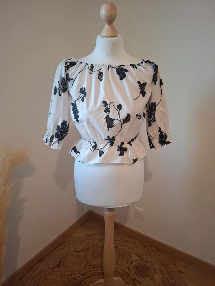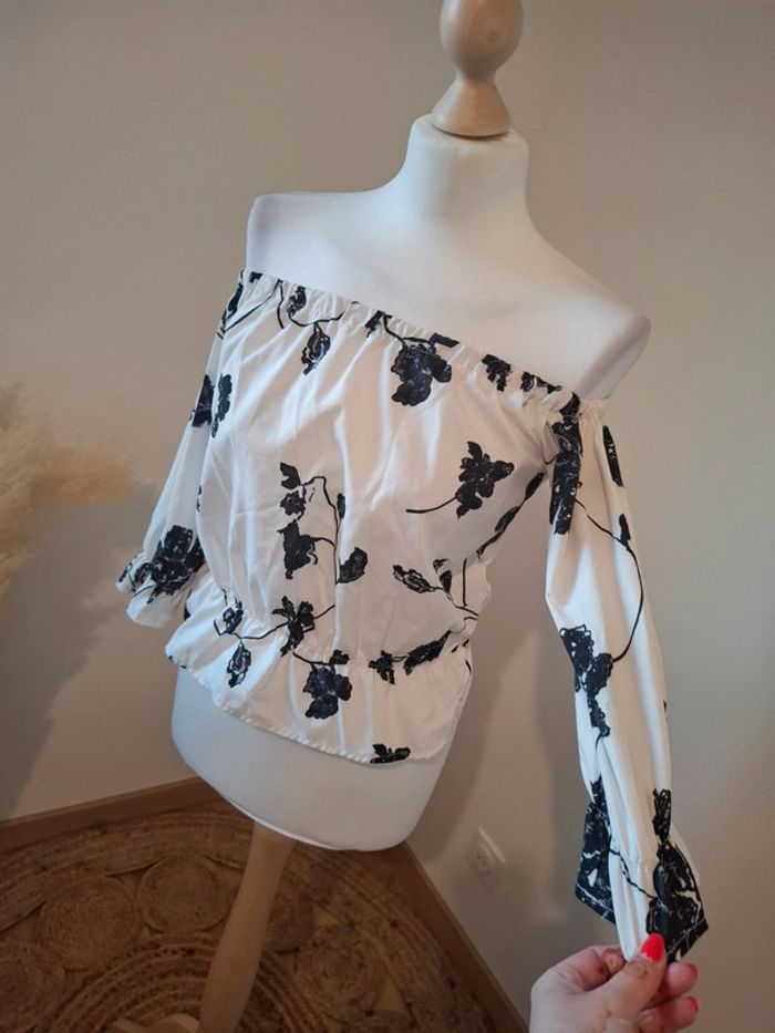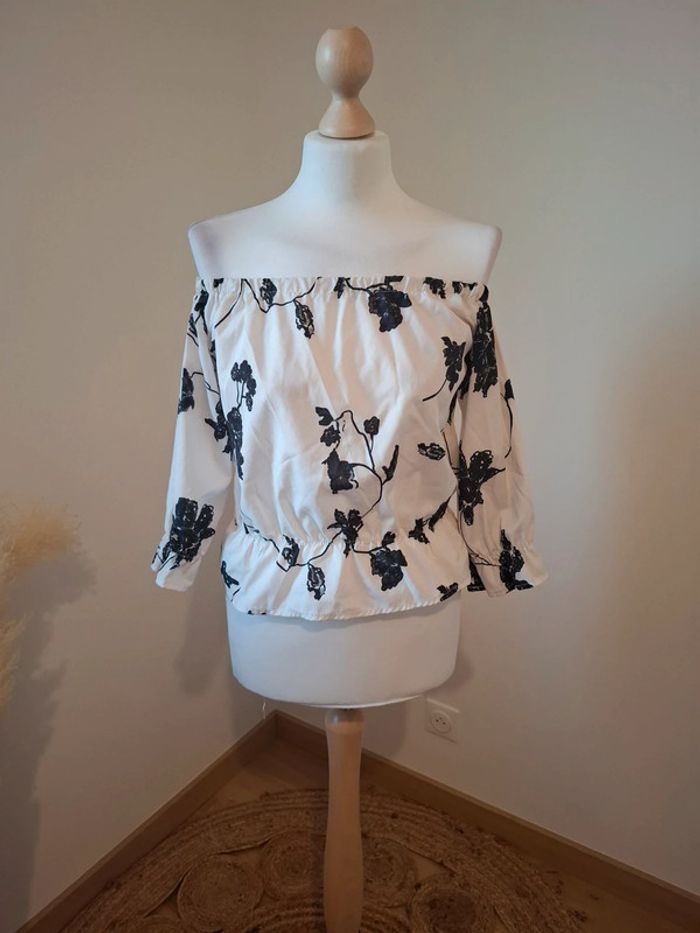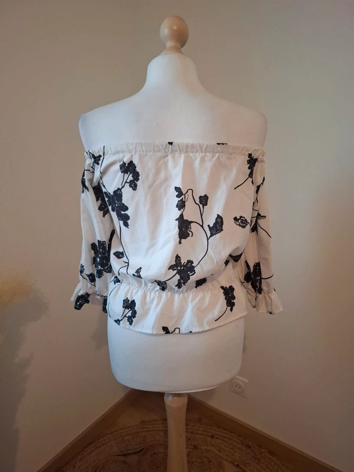 Top blanc fleuri à épaules dénudées taille S 36 - photo numéro 10