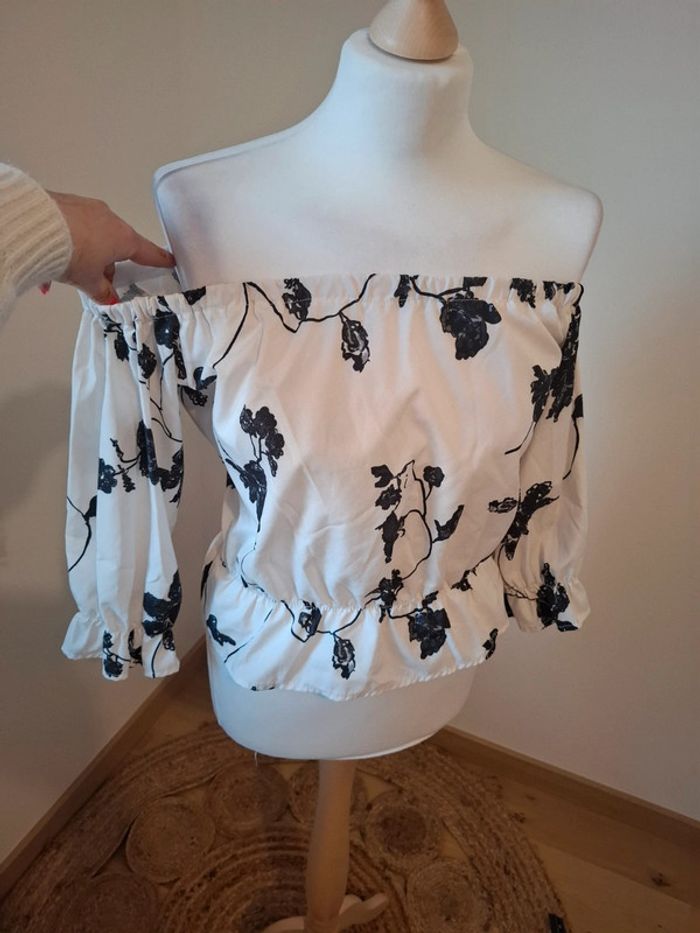 Top blanc fleuri à épaules dénudées taille S 36 - photo numéro 1