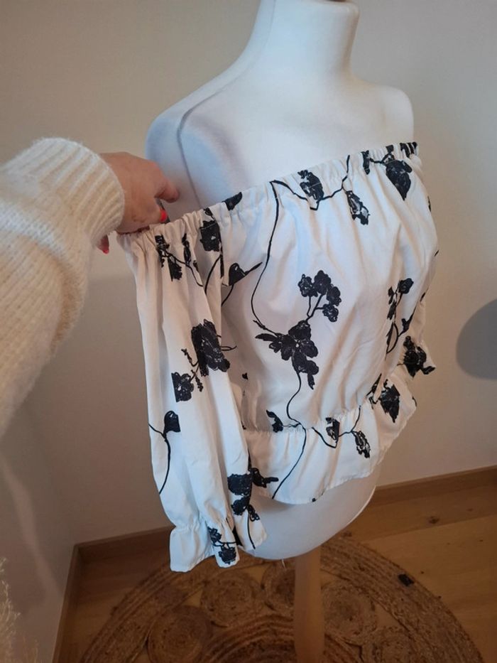 Top blanc fleuri à épaules dénudées taille S 36 - photo numéro 9