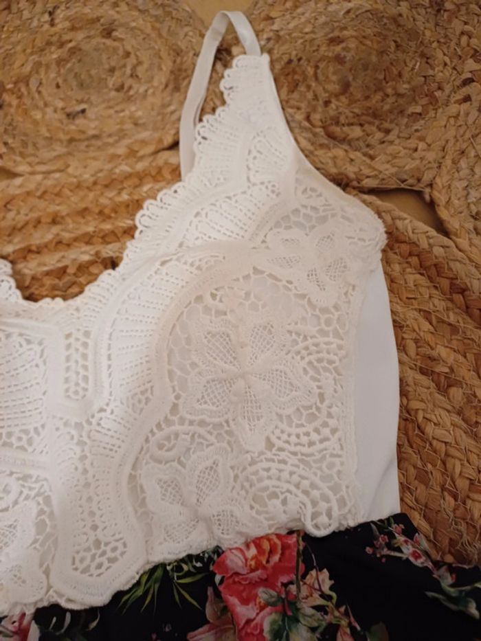 Combishort Fleurie en bas avec Haut en dentelle, coques à la poitrine et bretelles réglables taille XS 34. Bon état, ⚠️ elle est jaunie sous les bras, ne se voit pas une fois porté, voir photo 6. Longueur: 72cm #paulineragot_femmetaillexs #paulineragot_combitaillexs #combishortfleurie #bretellesréglables #bretellesajustables #coquesalapoitrine #hautendentelle #multicolore #coloré #simple #basic #basique #classic #classique #tendance #vintage #original #glamour #élégant #romantique #bohème #classe #chic #habillé #sortie #soirée #fete #cocktail #ceremonie #événement #misaison #automnehiver #printempsété #entretiendembauche #bureau #workinggirl #sortieentreamis #repasenfamille #dinerenamoureux #glamour #élégant #romantique #boheme #sexy #femmefatale #fetesdefindannée #Noël #saintvalentin #passion