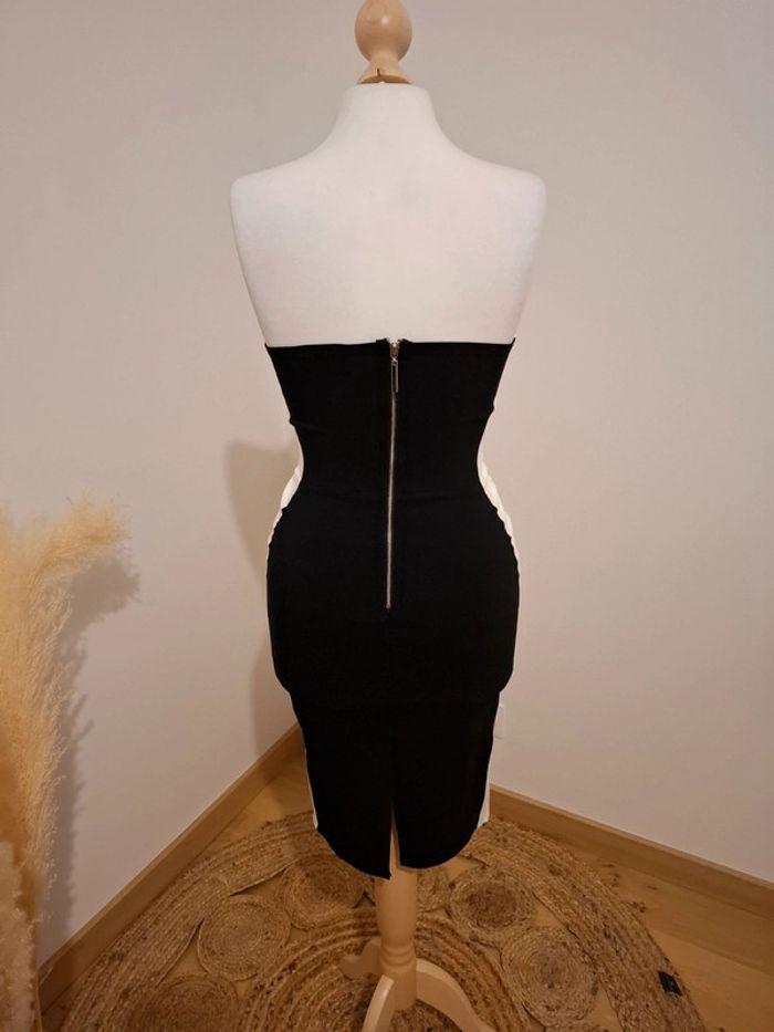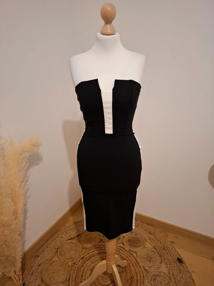 Robe bustier moulante noire avec bandes blanches sur les côtés légèrement transparentes, coques à la poitrine et fermeture au dos marque Tally Weijl taille XS 34. Très bon état. Longueur: 80cm Composition: 75% Viscose, 22% Polyamide et 3% Elasthane. #paulineragot_femmetaillexs #paulineragot_robetaillexs #tallyweijl #noireetblanche #bandesurlescotes #fermeture #zip #bustier #moulante #presducorps #simple #basic #basique #classic #classique #tendance #vintage #original #glamour #élégant #romantique #bohème #classe #chic #habillé #sortie #soirée #fete #cocktail #ceremonie #événement #misaison #automnehiver #printempsété #entretiendembauche #bureau #workinggirl #sortieentreamis #repasenfamille #dinerenamoureux #glamour #élégant #romantique #boheme #sexy #femmefatale #fetesdefindannée #Noël #saintvalentin #passion #rétro #jourdelan #réveillon #cadeau #ideedecadeau #cadeaudenoel #nouvelan