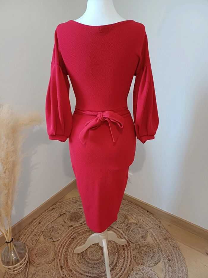 Robe rouge chic cache-coeur moulante Boohoo taille XS 34 - photo numéro 5