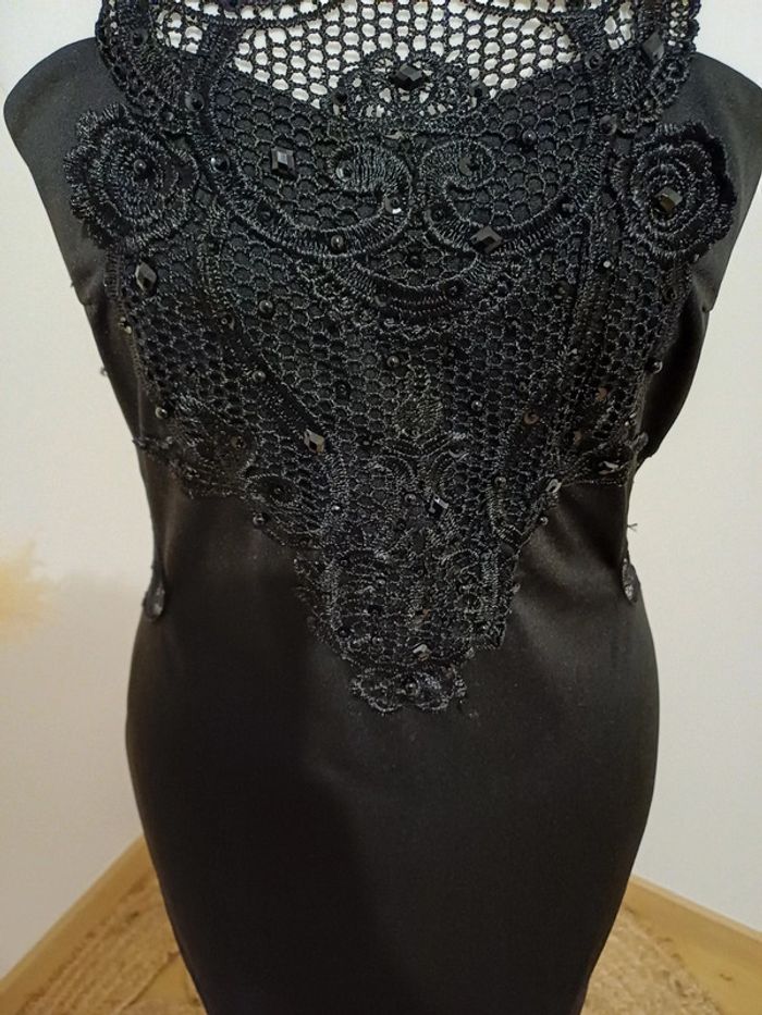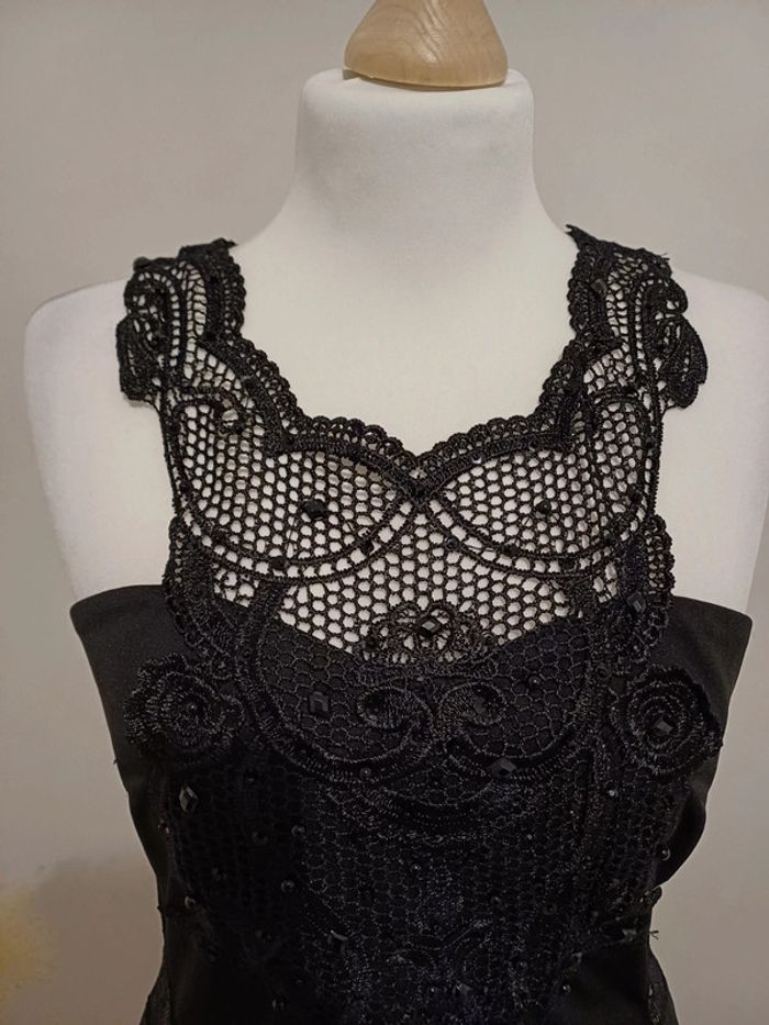 Robe noire chic avec strass et dentelle taille XS 34 - photo numéro 2