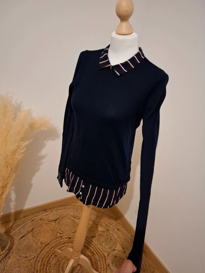 Pull chemise chic bleu marine/noir Pimkie taille S 36 - photo numéro 2