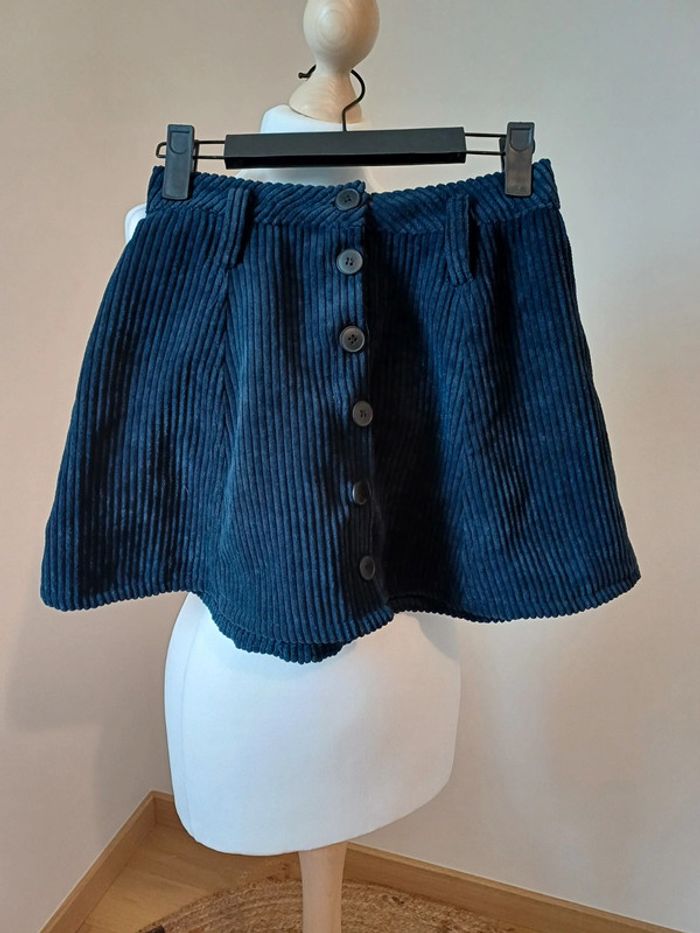 Mini-jupe bleue marine côtelée en velours Bershka taille XS 34 - photo numéro 5
