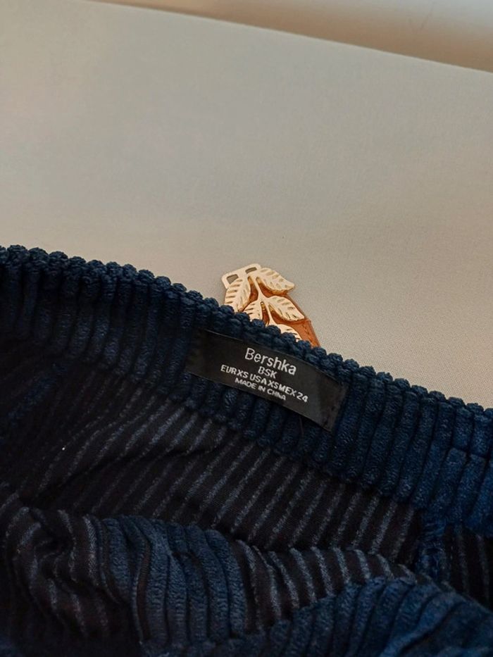 Mini-jupe bleue marine côtelée en velours Bershka taille XS 34 - photo numéro 2
