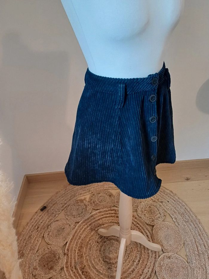 Mini-jupe bleue marine côtelée en velours Bershka taille XS 34
