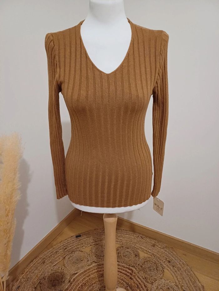 Top marron côtelé neuf Willy-Z taille XS/S 34/36 - photo numéro 3