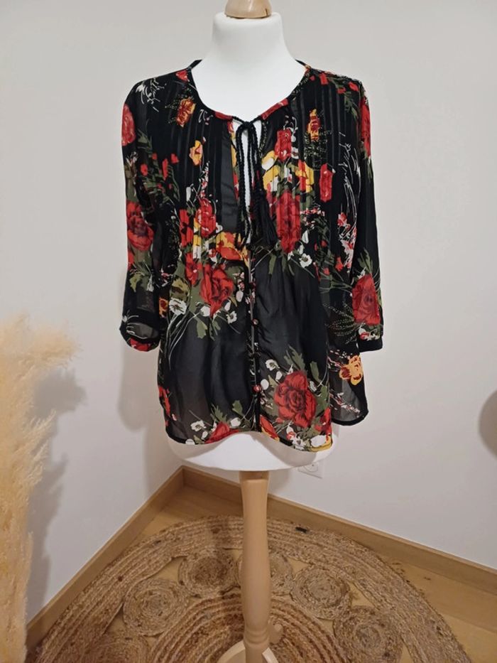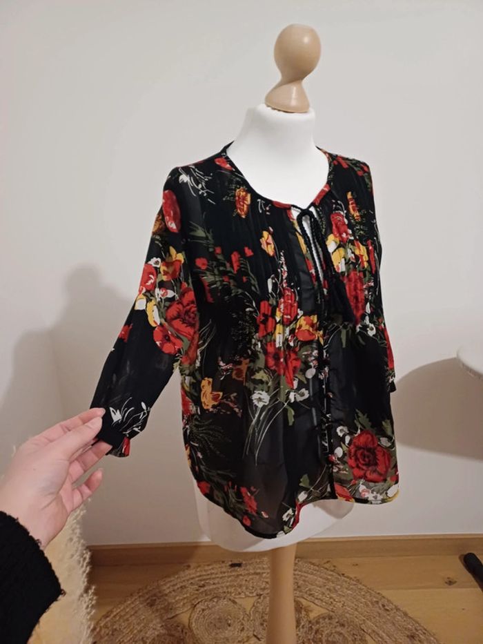 Blouse noire transparente fleurie Jennyfer taille XS/S 34/36 - photo numéro 2