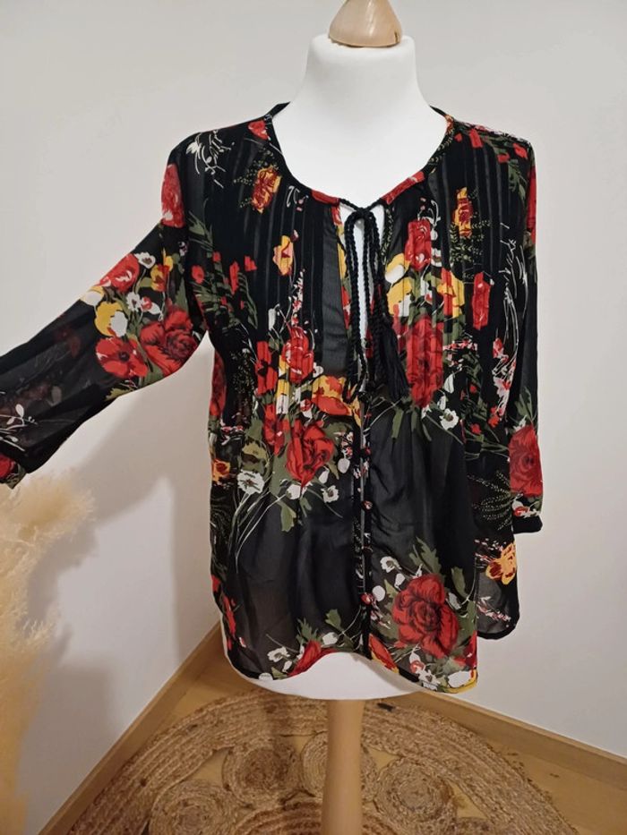 Blouse noire transparente fleurie Jennyfer taille XS/S 34/36 - photo numéro 1