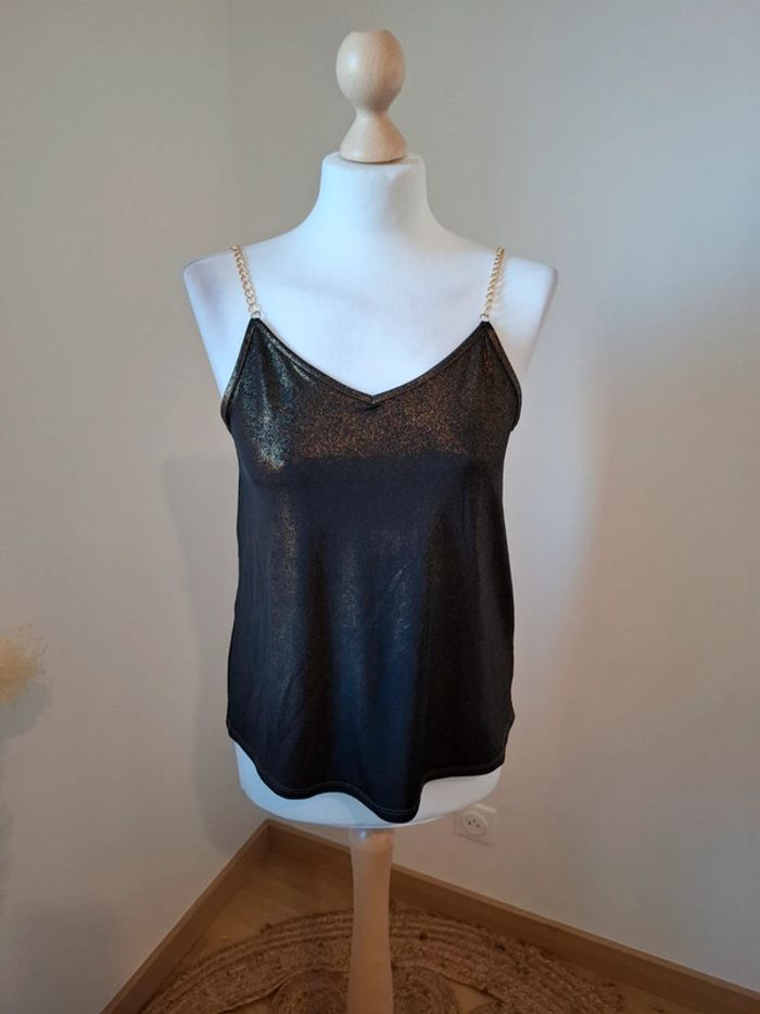 Débardeur noir/doré pailleté K Woman taille S 36 - photo numéro 7