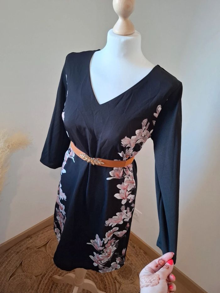 Robe noire chic fleurie neuve Grain de Malice taille S 36 - photo numéro 3