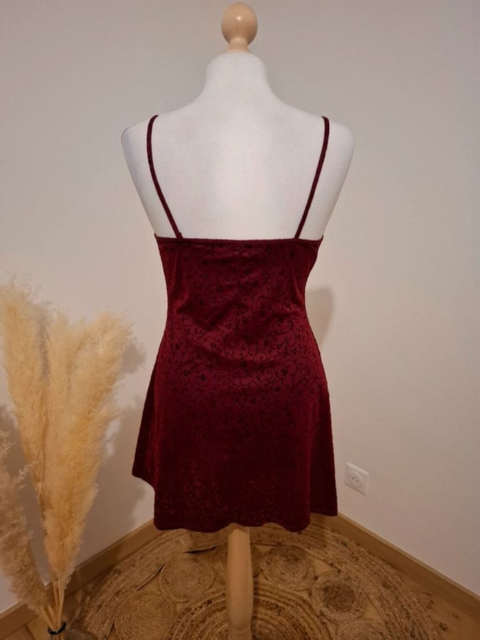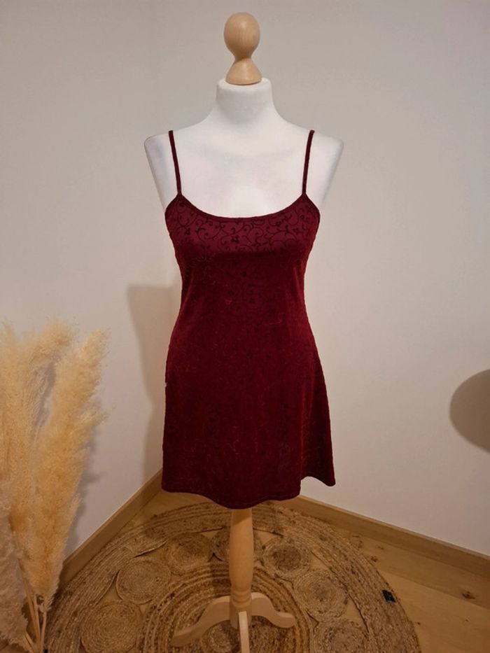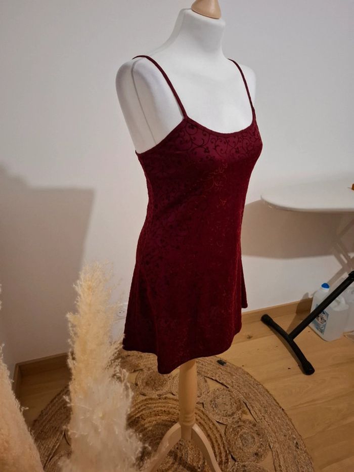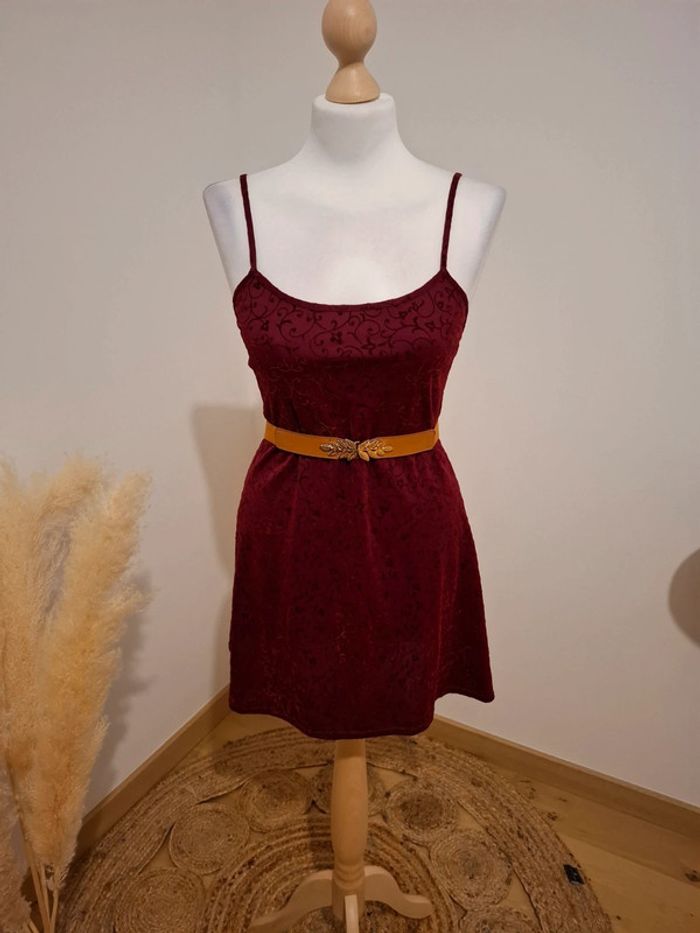Mini robe Bordeaux fleurie vintage à bretelles avec dos nu marque Pimkie taille S 36. La ceinture n'est pas incluse. Très bon état. Longueur: 78cm #paulineragot_femmetailles #paulineragot_robetailles #pimkie #bordeaux #velours #texturée #minirobe #courte #bretelles #dosnu #vintage #Fleurie #motifs #simple #basic #basique #classic #classique #tendance #vintage #original #glamour #élégant #romantique #bohème #classe #chic #habillé #sortie #soirée #fete #cocktail #ceremonie #événement #misaison #automnehiver #printempsété #entretiendembauche #bureau #workinggirl #sortieentreamis #repasenfamille #dinerenamoureux #glamour #élégant #romantique #boheme #sexy #femmefatale #fetesdefindannée #Noël #saintvalentin #passion #rétro #jourdelan #réveillon #cadeau #ideedecadeau #cadeaudenoel #nouvelan