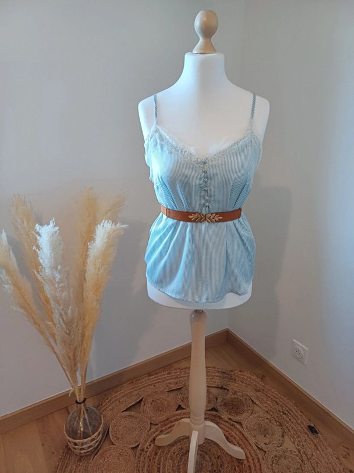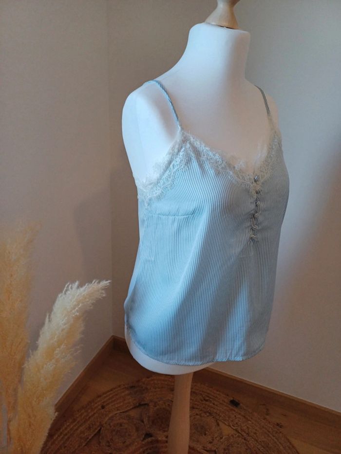 Débardeur rayé bleu clair et blanc à bretelles réglables avec dentelle et boutons au décolleté marque Kiabi taille M 38. La ceinture n'est pas incluse. Très bon état. Longueur: 60cm Composition: 100% Polyester #paulineragot_femmetaillem #paulineragot_hauttaillem #kiabi #débardeurrayé #bleuclair #bleuciel #bleuetblanc #boutons #dentelledecolleté #dentelleblanche #bretellesréglables #simple #basic #basique #classic #classique #tendance #vintage #original #glamour #élégant #romantique #bohème #classe #chic #habillé #sortie #soirée #fete #cocktail #ceremonie #événement #misaison #automnehiver #printempsété #entretiendembauche #bureau #workinggirl #sortieentreamis #repasenfamille #dinerenamoureux #glamour #élégant #romantique #boheme #sexy #femmefatale #fetesdefindannée #Noël #saintvalentin #passion